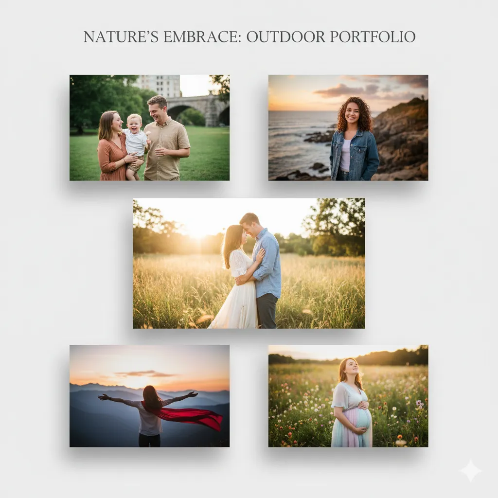 Dynamic outdoor photoshoot in natural or urban settings. Great for engagement photos and lifestyle sessions. Includes 2.5-hour session and 35 edited images.